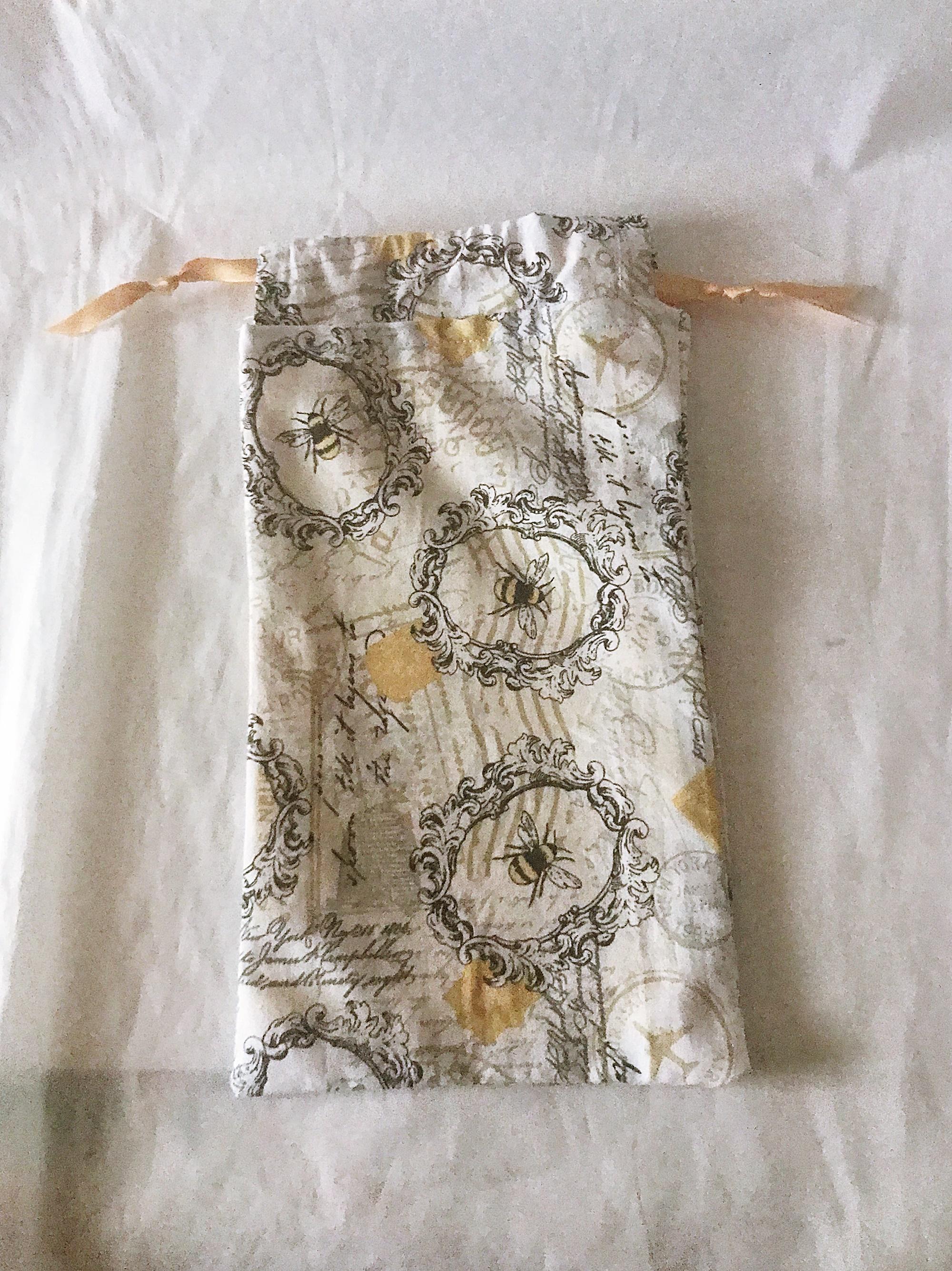 Bee Fabric Gift Bag: Drawstring Cotton Lined Bag, Handmade