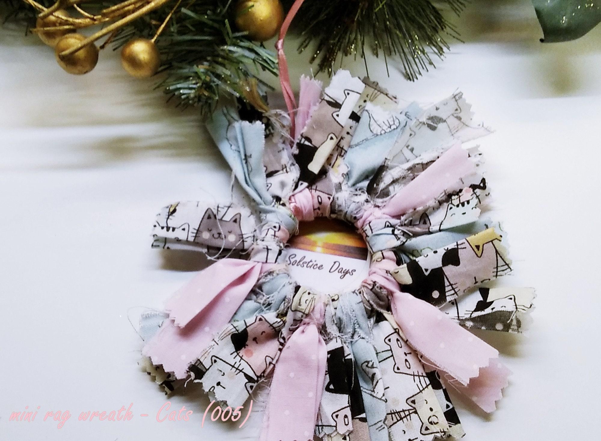Cat mini rag wreath, cotton fabric home decoration, eco friendly , handmade in Yorkshire