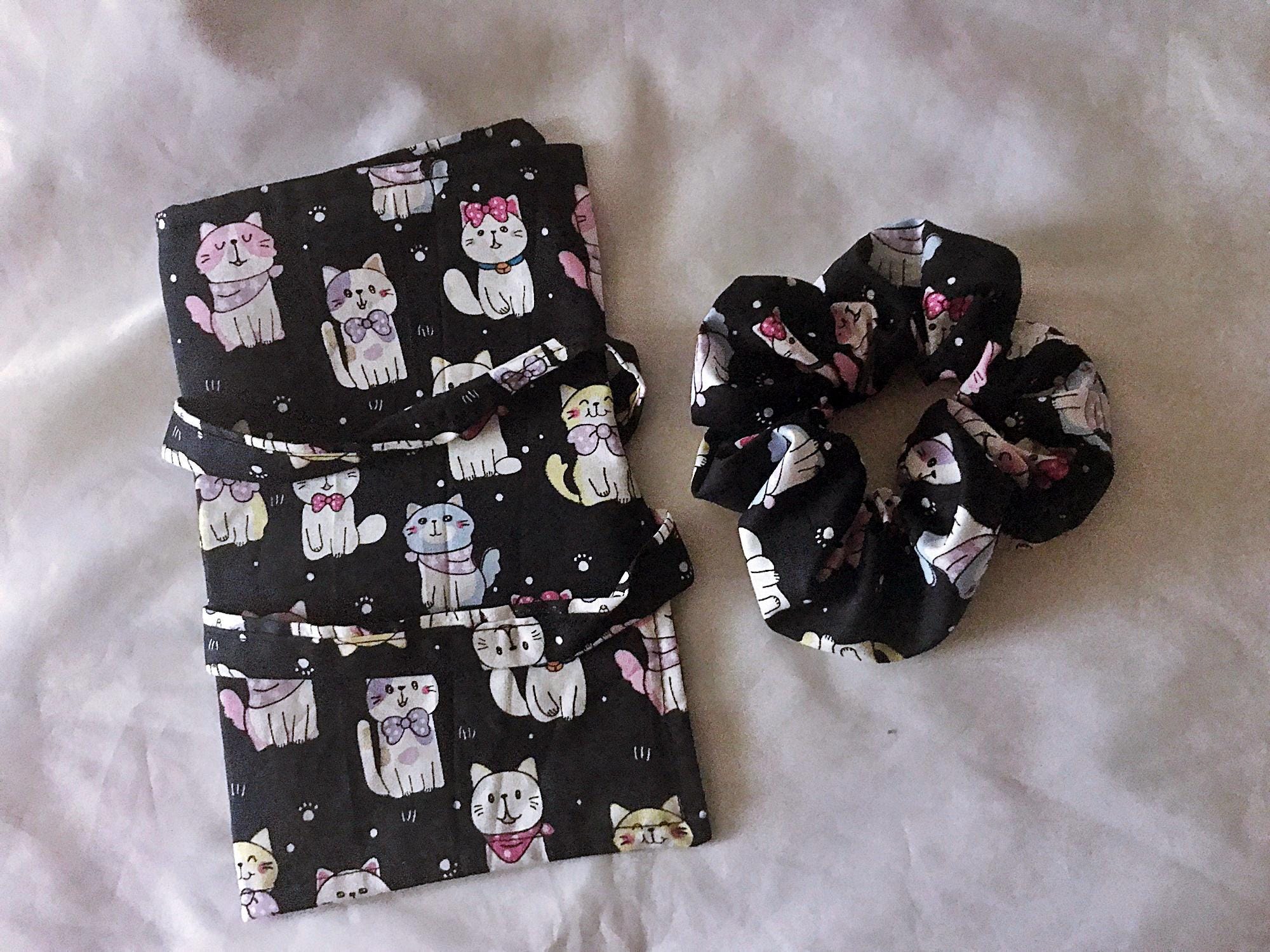 Cats Pencil Roll Case: Cats Scrunchie, Cotton Fabric, Back to School, Handmade