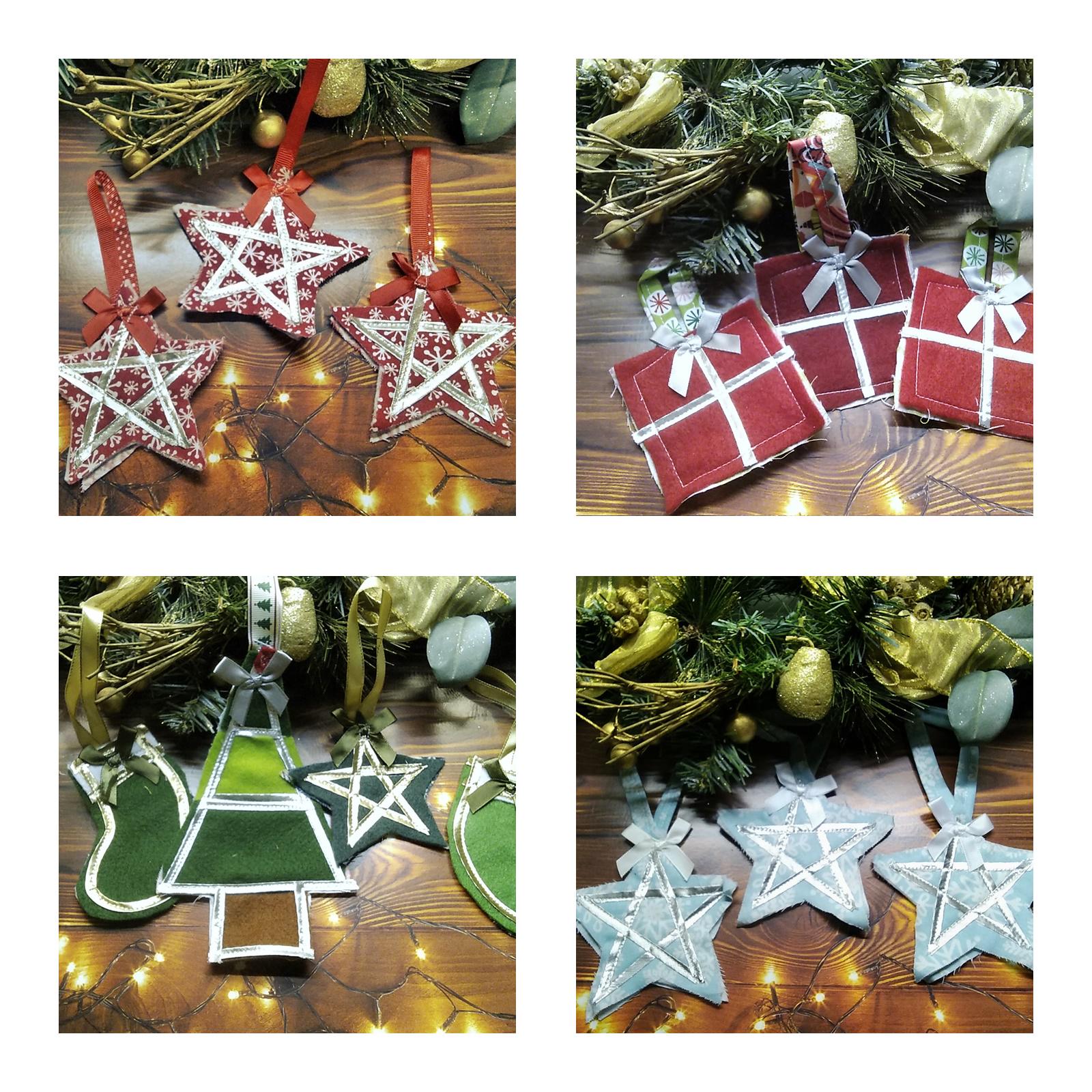 christmas tree decoration - felt xmas decoration - mini rag wreath - christmas decor - christmas star - folded fabric decoration - handmade tree ornament - handmade decoration - christmas tree ornament - red felt tree decoration - green felt tree ornament - gold mini rag wreath - rag wreath - handmade in Yorkshire - bees xmas decoration - motorbike folded decoration - biker tree ornament - stocking filler gift - secret santa