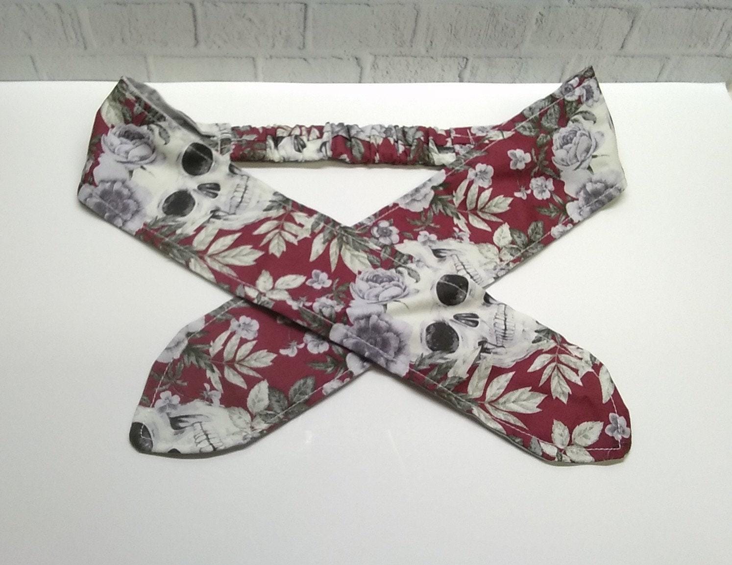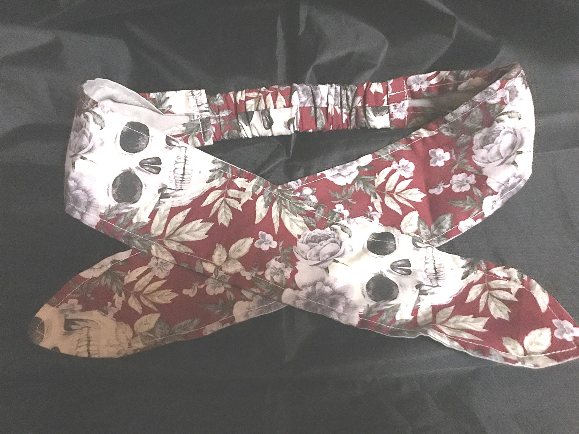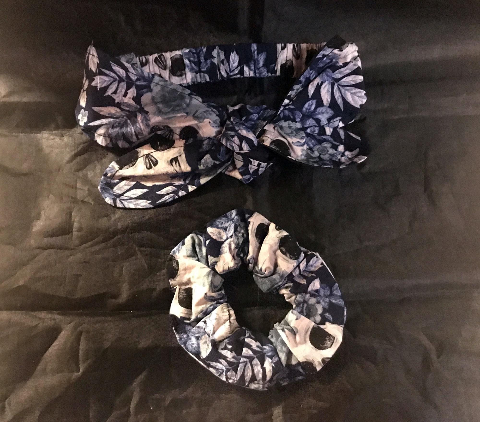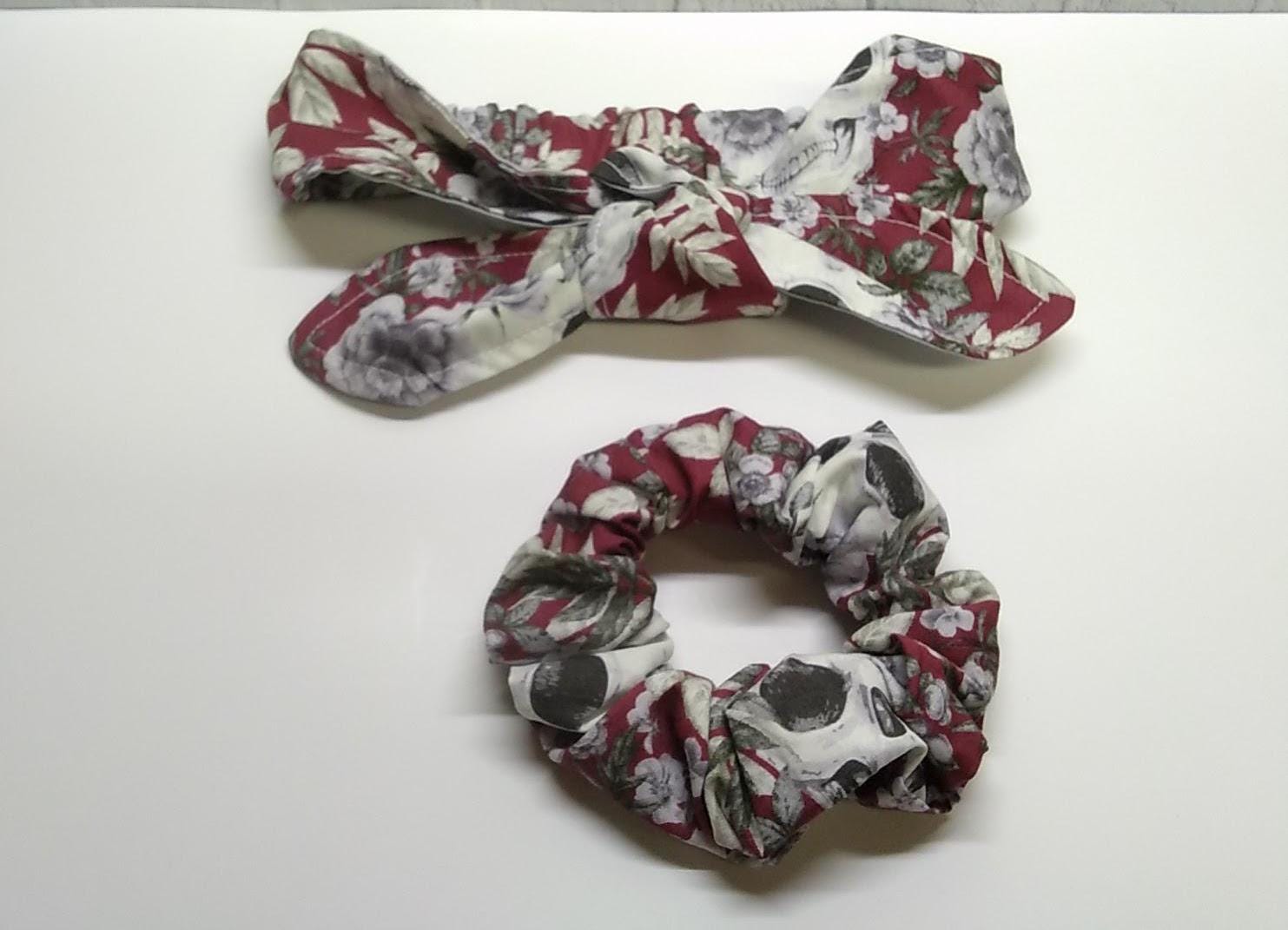Halloween Hair Accessories, Skull goth headband, skull print scrunchie, skull and roses gift for got