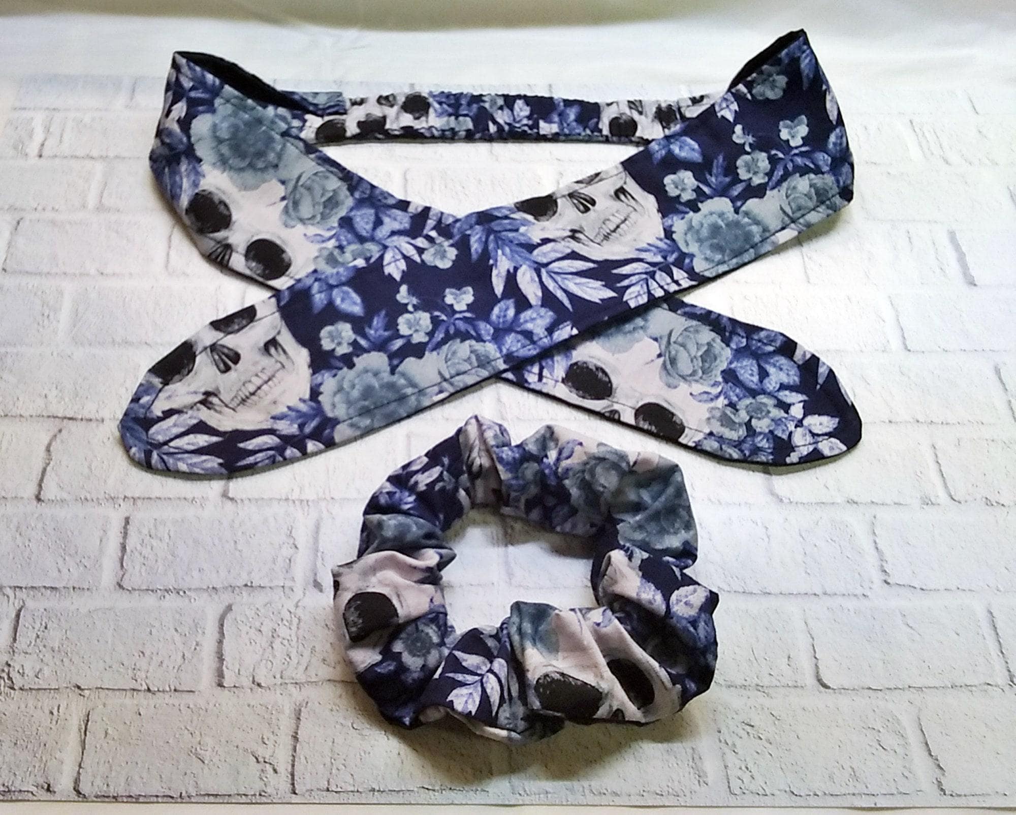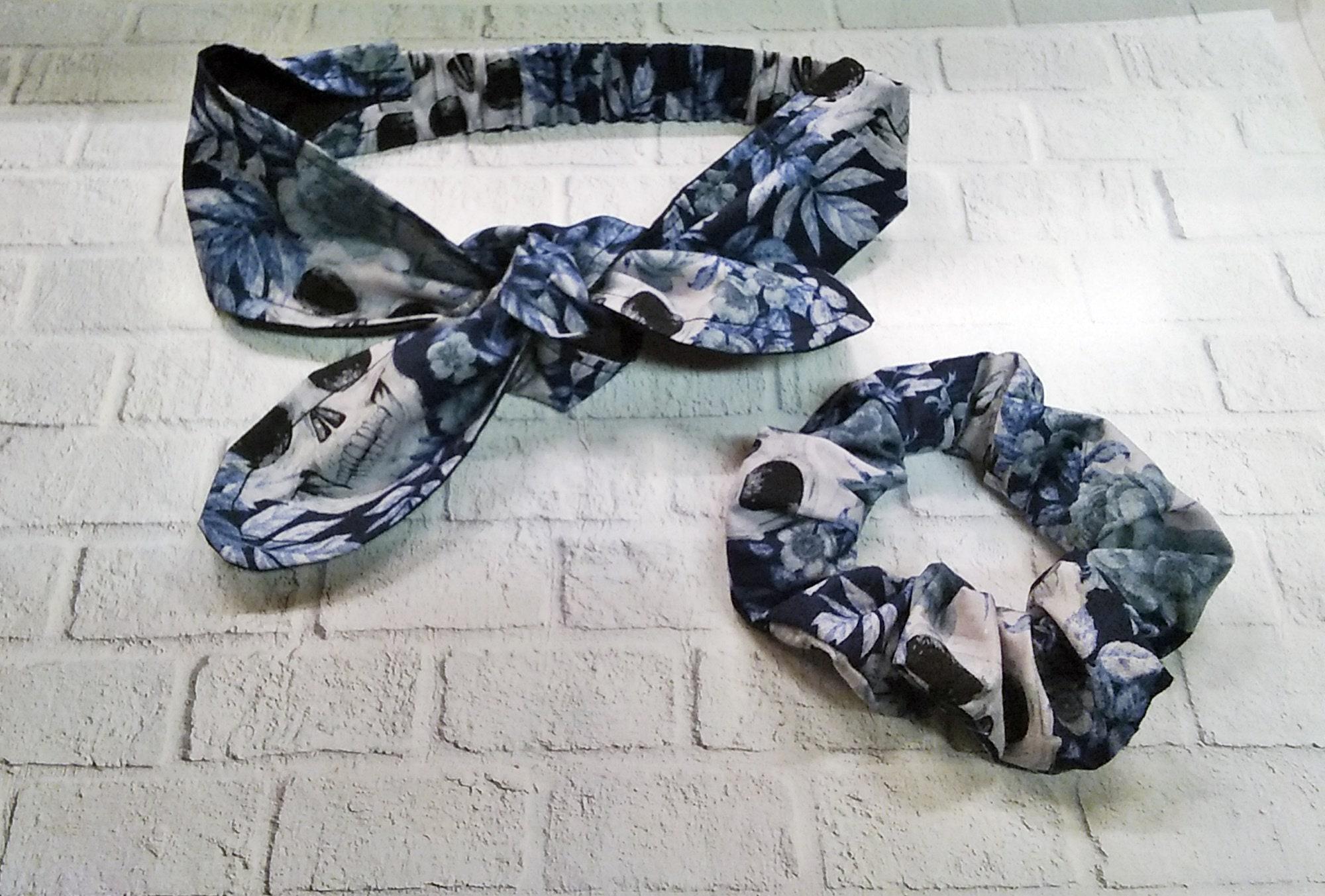Skull Headband and matching scrunchie Materials : cotton fabrics Detail : reversible headband left untied so you can adjust to fit with the elastic (6" inch long) Adult : size 2" inches wide (6.35cm) x 35"inches long ( 88cm) Scrunchie : size 25" x 4" inches ( elastic 10" long) VARIATIONS: - click here for headbands in other fabrics https://www.etsy.com/uk/shop/SolsticeDays?section_id=37035856 SOLD SEPARATE - Skulls make up brush roll https://www.etsy.com/uk/listing/1791205860/handmade-gothic-skulls-make-up-brush? Headband Pattern : 7 Pine Design **Any queries? Please read my FAQ for information** **Design (c) J Penney/Solstice Days, Yorkshire - Handmade Items from a smoke free home, thanks for visiting my online shop** <<>> **Please note items are sent using Royal Mail Tracked 48 postage and shipping within England, Scotland and Wales only. Please make sure your address is up to date, thanks** If you are based in Northern Ireland & EU, please note that I am unable to accept orders for products due to new General Product Safety Regulations (GPSR 2024).