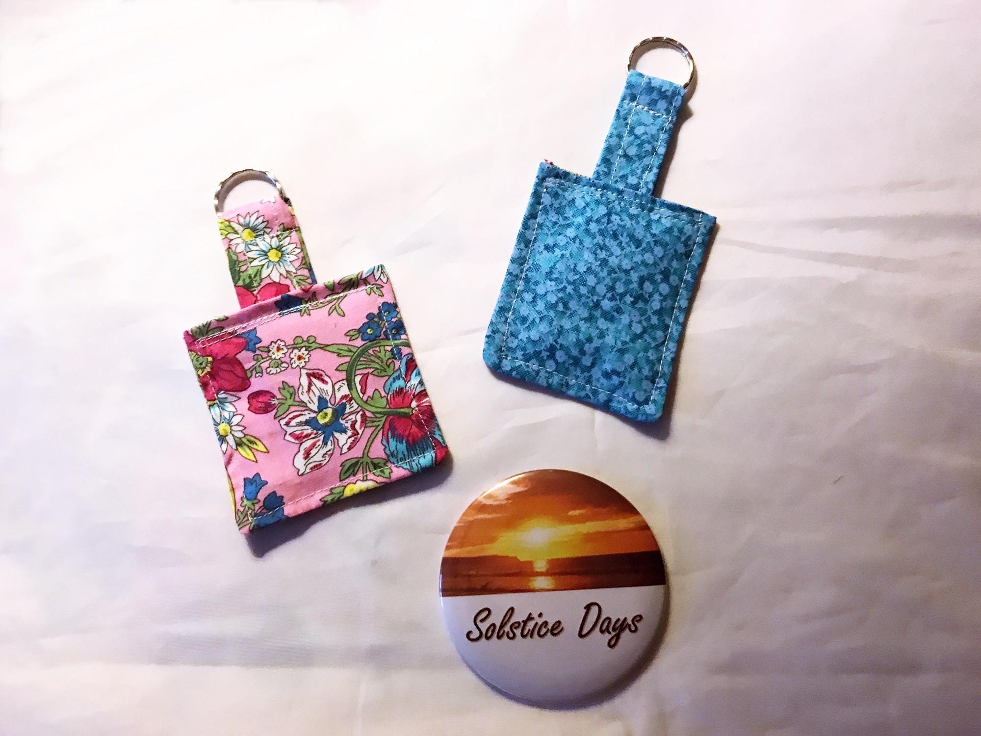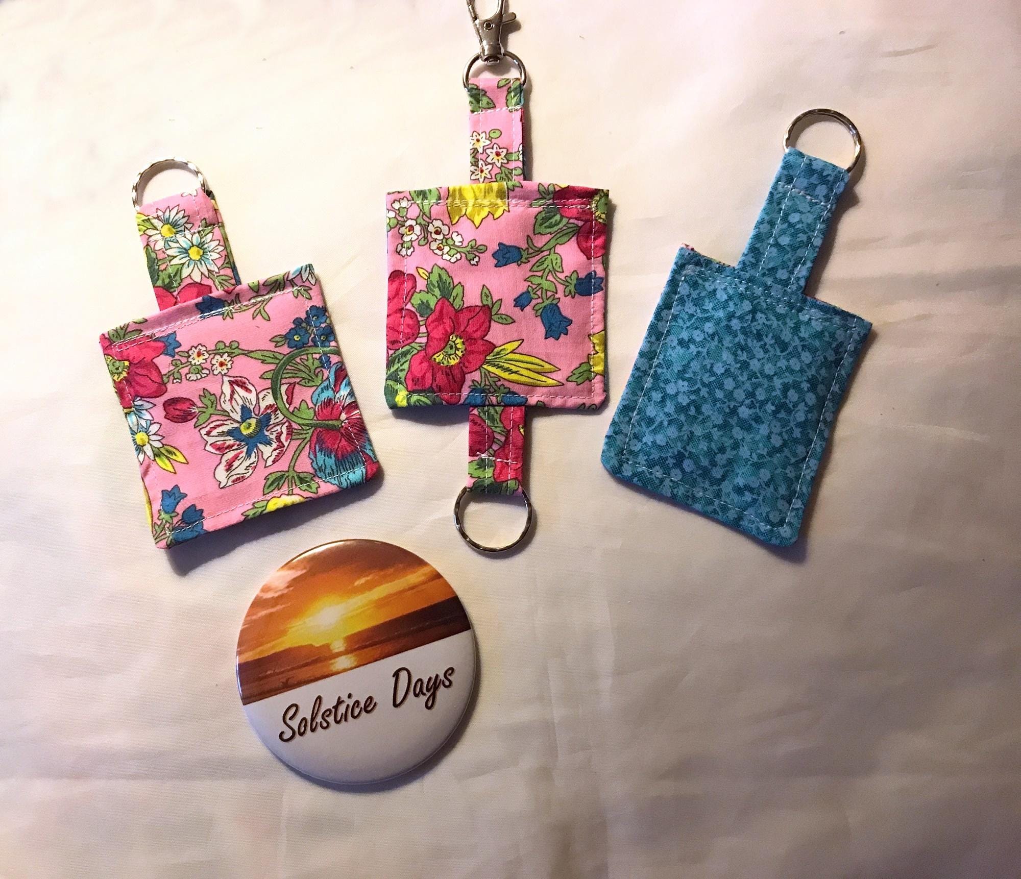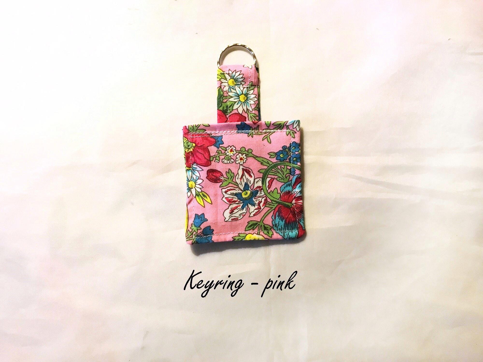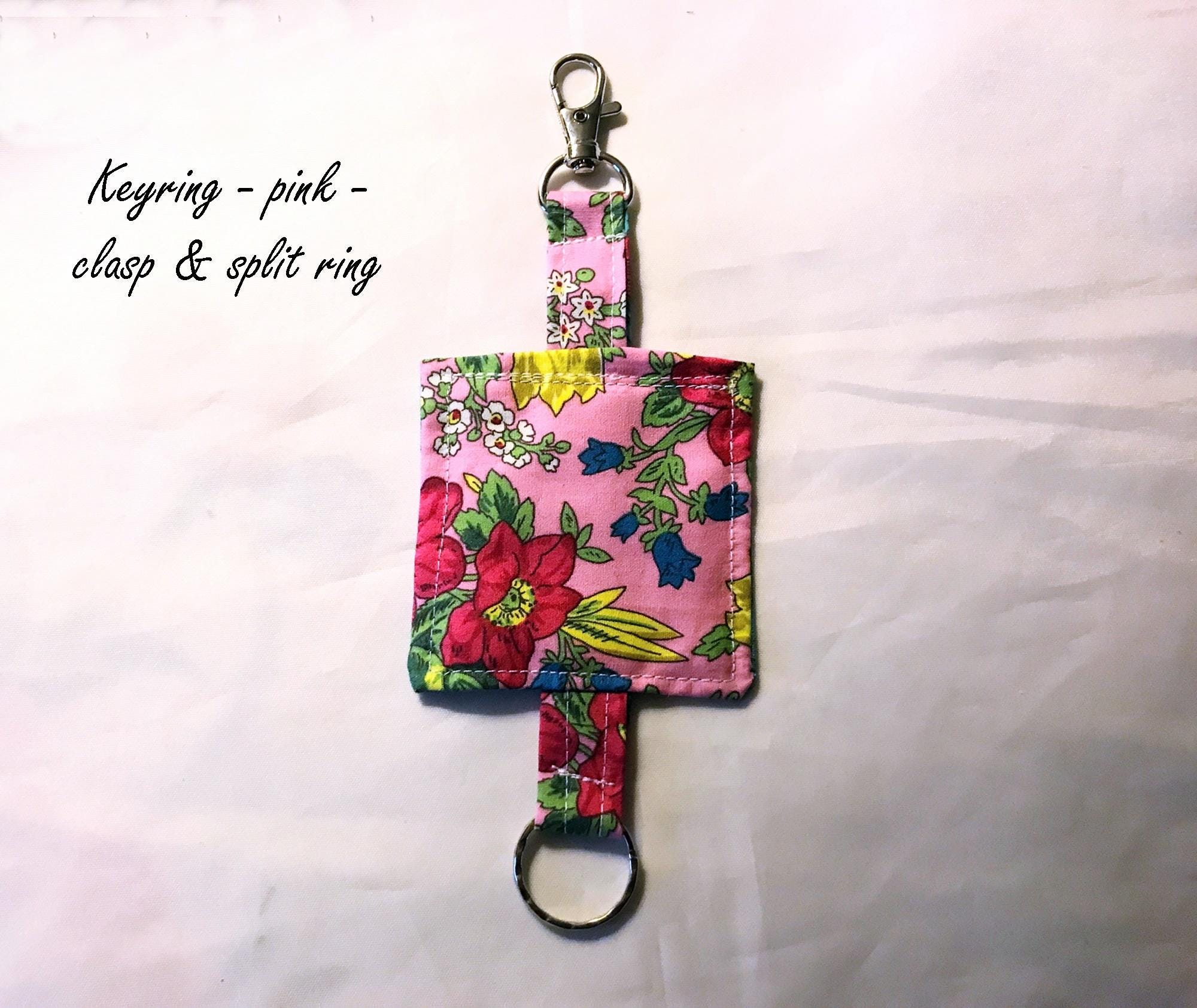 Pink & Blue Floral Keyrings, Eco friendly Fabric Keychain, Luggage Tag, Keyfob Handmade in Yorkshire